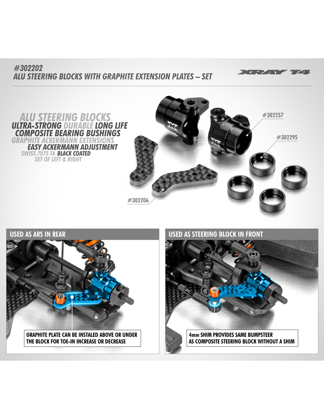 ALU STEERING BLOCKS WITH GRAPHITE EXTENSION PLATES SET