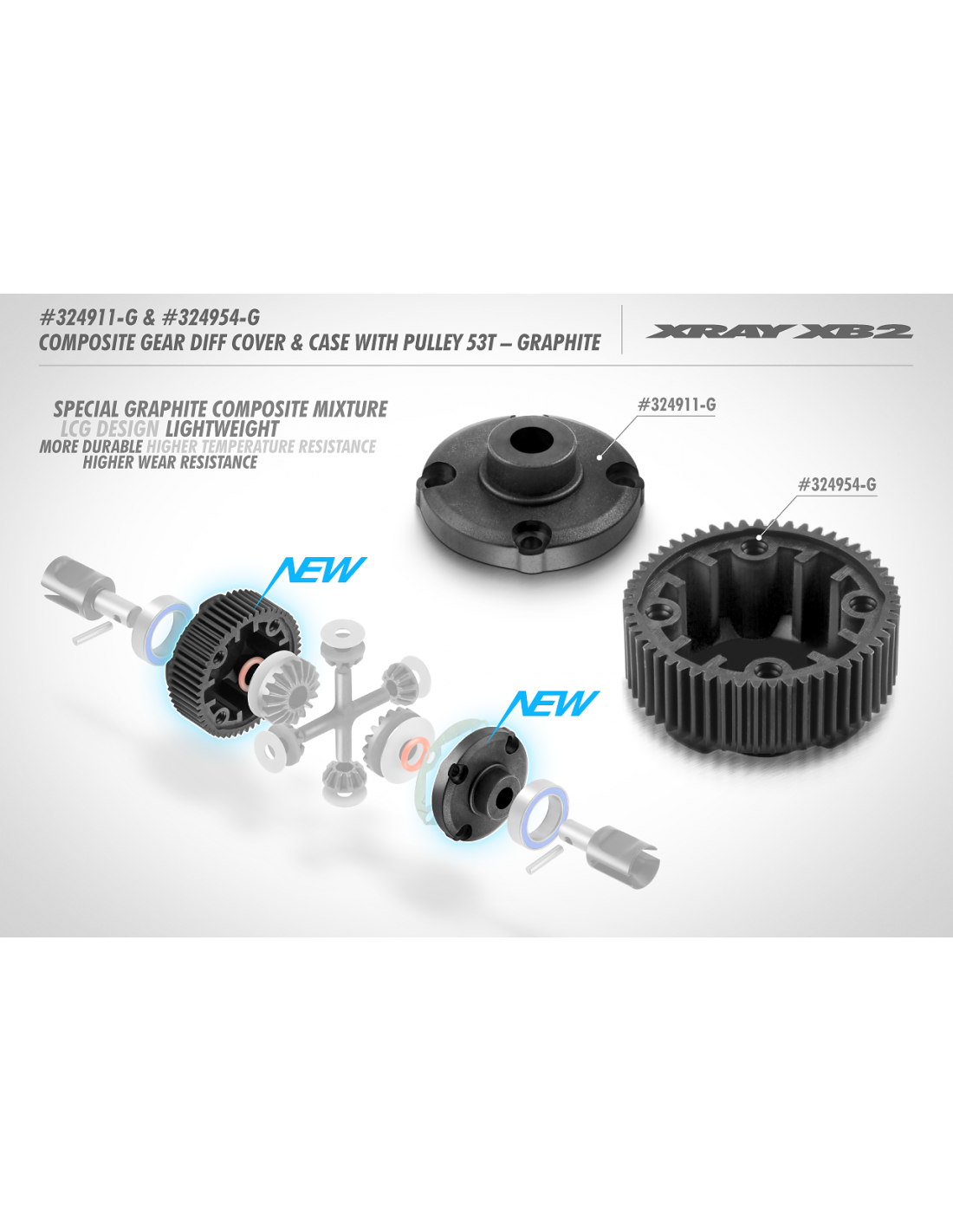 COMPOSITE GEAR DIFFERENTIAL CASE WITH PULLEY 53T - LCG - GRAPHITE