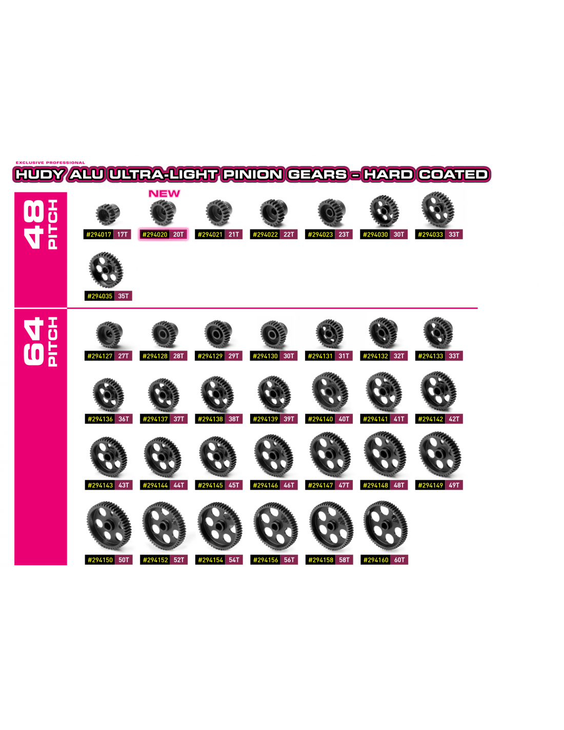 HUDY ALU ULTRA-LIGHT PINION GEAR - HARD COATED -  20T / 48