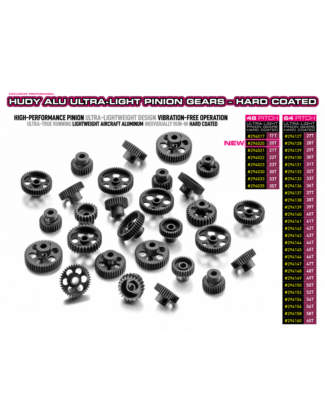HUDY ALU ULTRA-LIGHT PINION GEAR - HARD COATED -  20T / 48