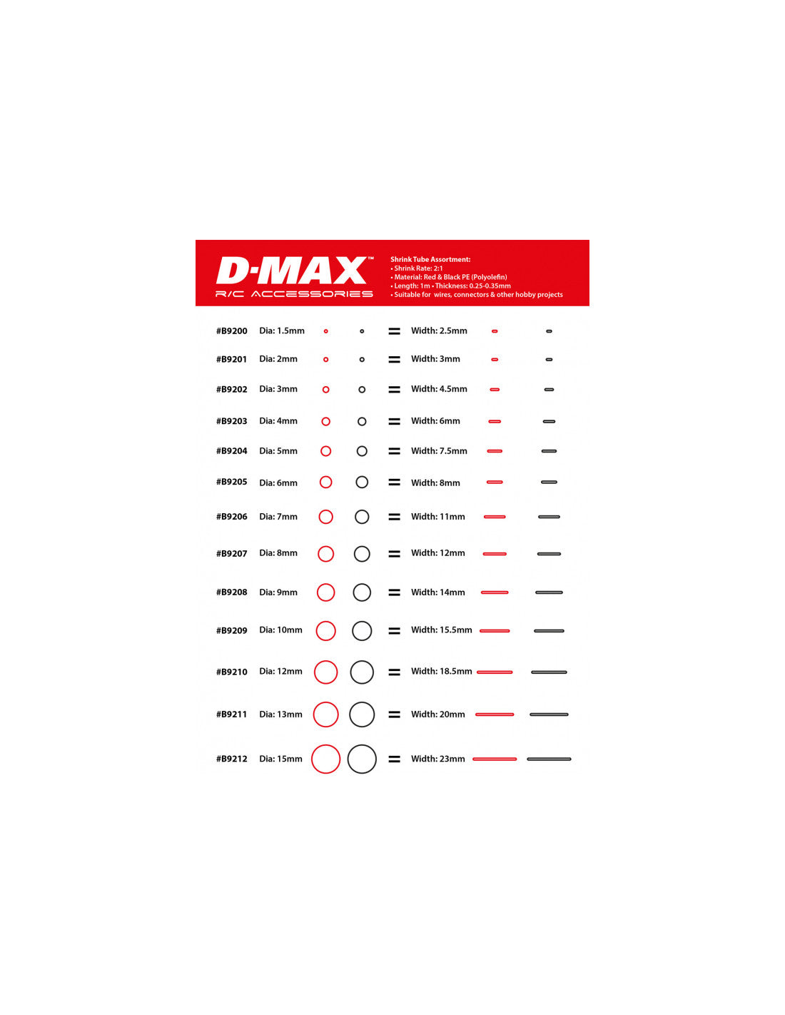 Krympeflex rød og hvid D8 B12mm x 1m