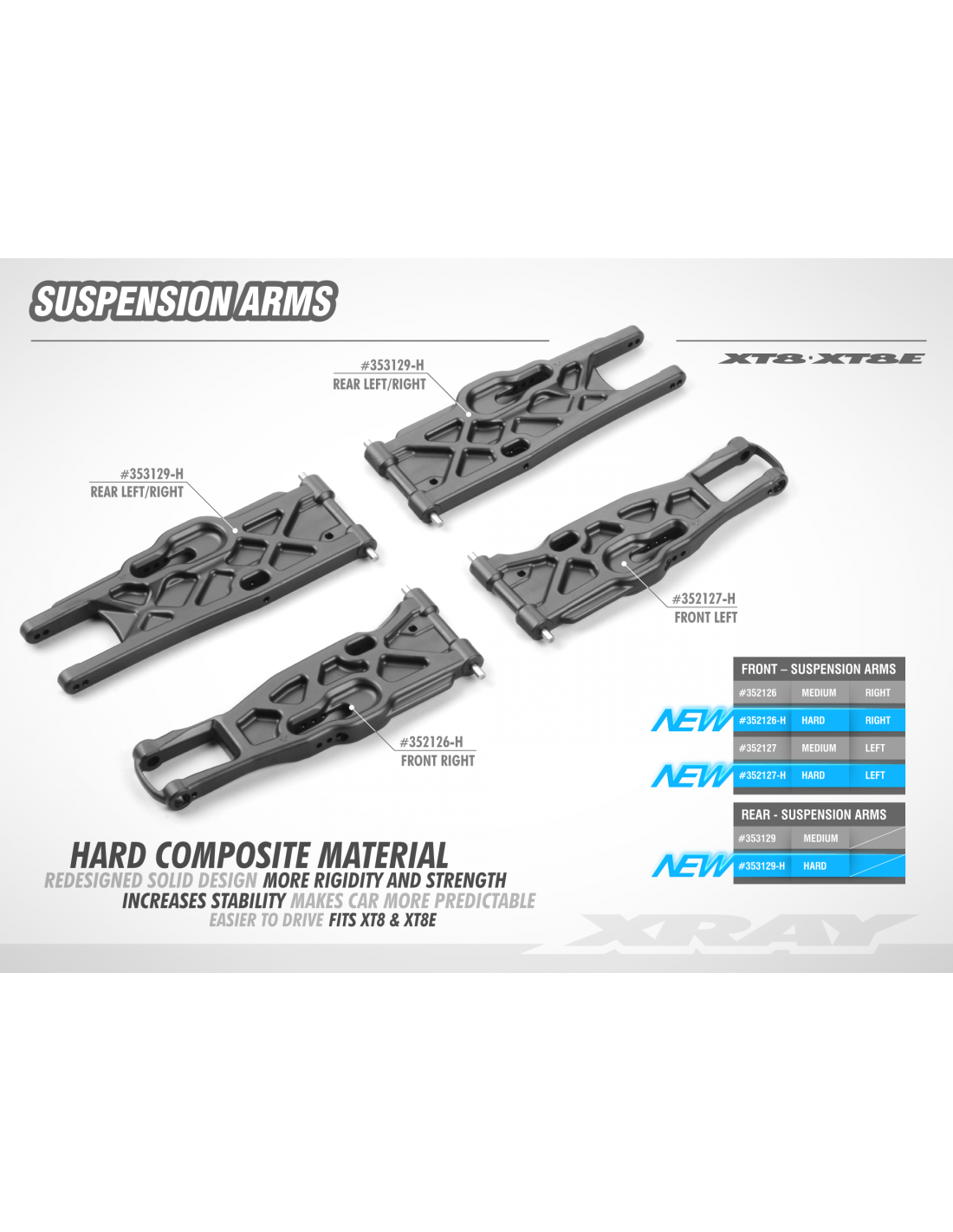 XT8 COMPOSITE SOLID FRONT LOWER SUSPENSION ARM LEFT - HARD