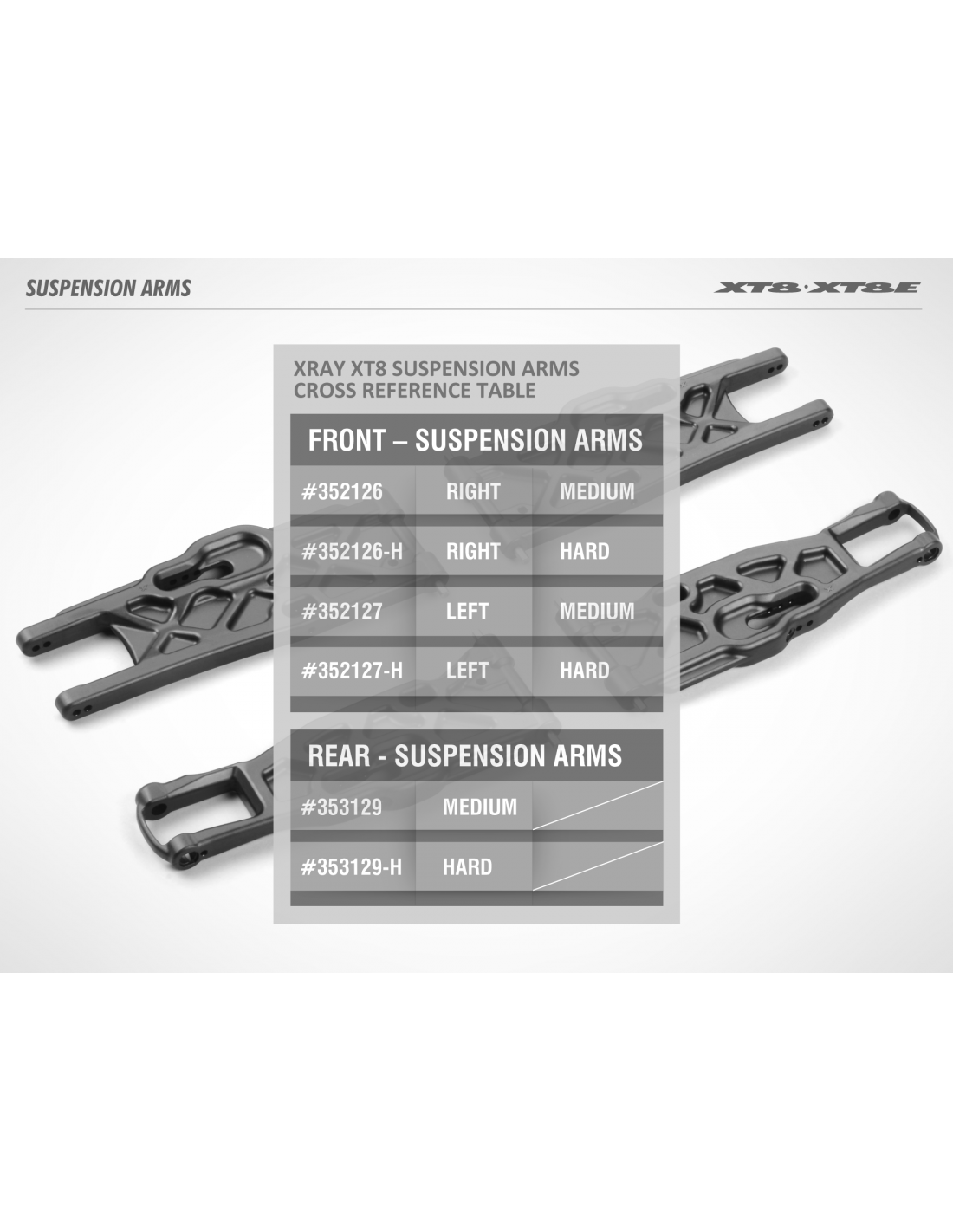 XT8 COMPOSITE SOLID FRONT LOWER SUSPENSION ARM RIGHT - HARD